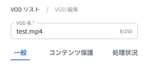 例:『test.mp4』という動画をアップロードするとVOD名もtest.mp4となります。