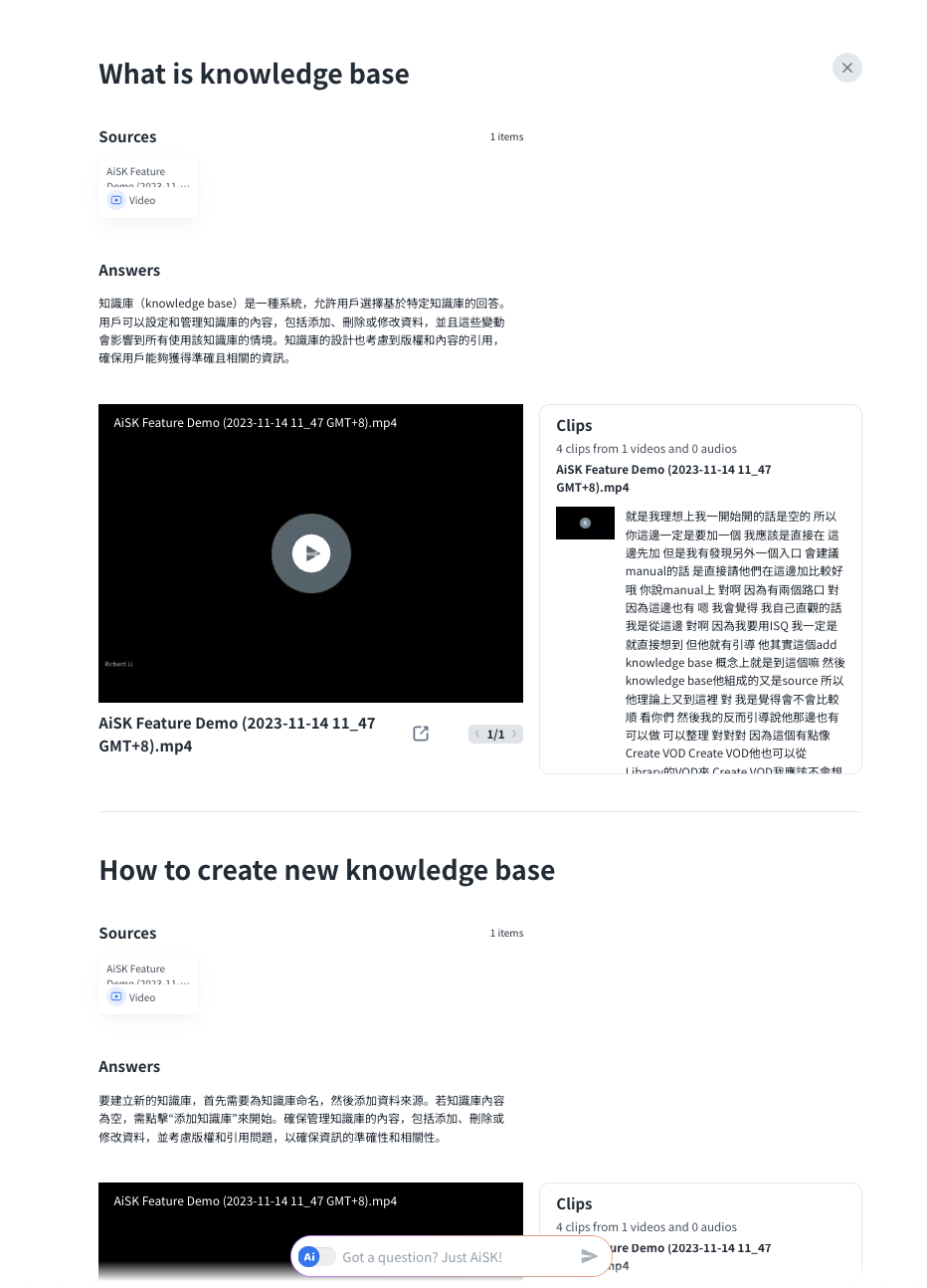Ask questions via AiSK