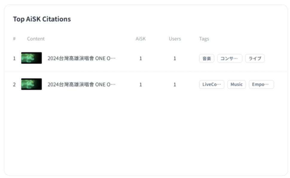 • Top AiSK Citations: You can confirm the top AiSK citations information
