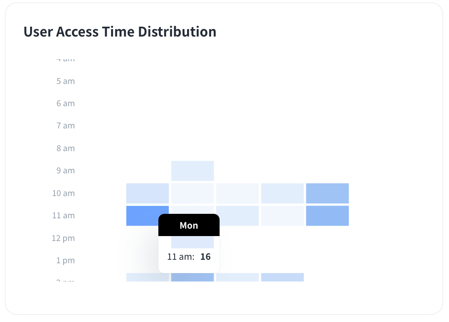• User Access Time Distribution: The table of user access time distribution. Hover over data blocks to get detailed information.