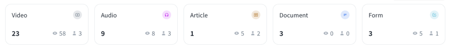 • Content list (Video/Audio/Article/Document/Form): Hover to confirm the amount of your content, content views and viewers.