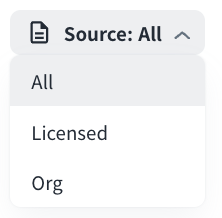 You can switch the source type by pressing the drop-down menu on the upper right side of the Content section: All, Licensed, and Org.