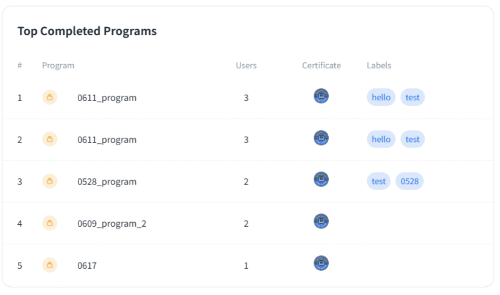 • Top Completed Programs: You can confirm the most engaged completed program information
