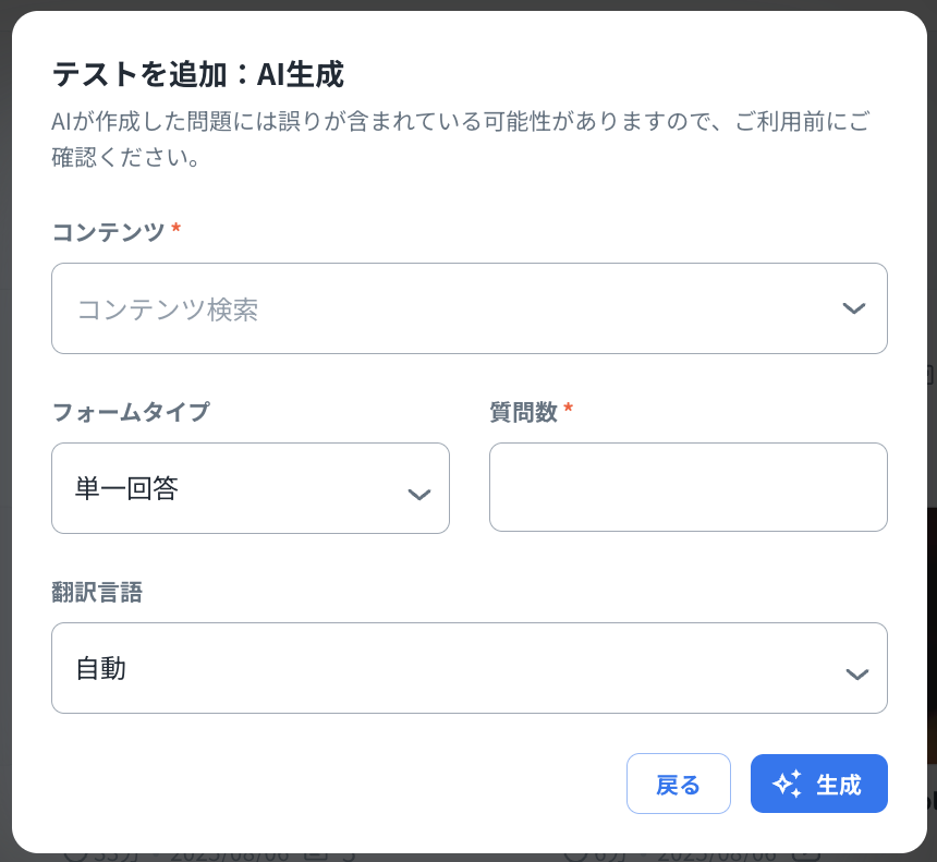 AIで構築する:AIがコンテンツを元に自動でテストを生成します。