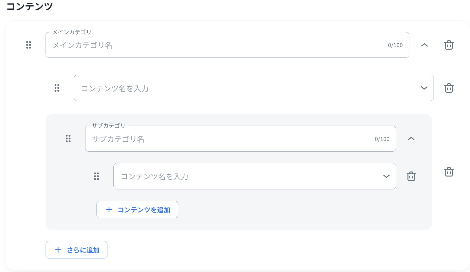 「コンテンツ」ではカリキュラムに含めたいコンテンツをBlendVision AiMのナレッジハブから選択します。