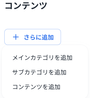 サイドメニューの「+」をクリックし「コンテンツ」メニューから「カリキュラム」をクリックして「カリキュラム作成」画面を開きます。