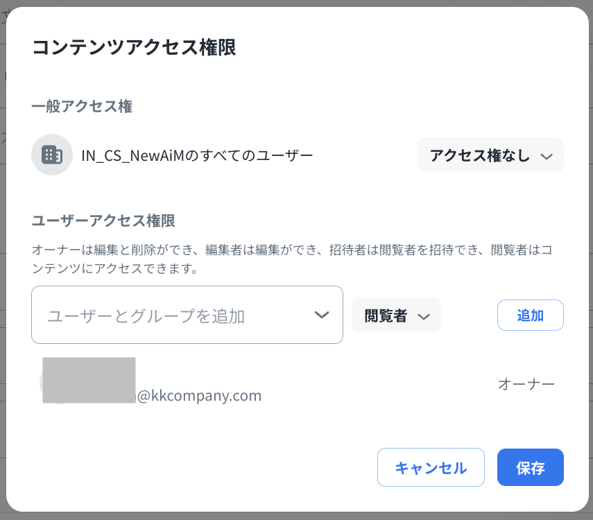 アイコンからアクセス権限を設定できます。