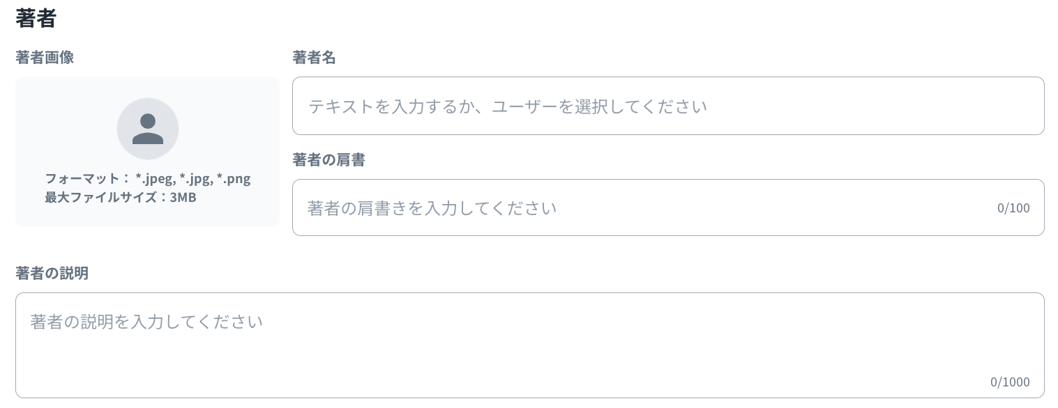 「著者」には必要に応じてコンテンツの作成者や企業情報などを設定できます。