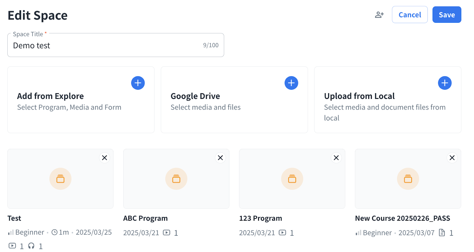 - Edit: Click the “Edit” button to change the space name and add/remove the contents in the space
