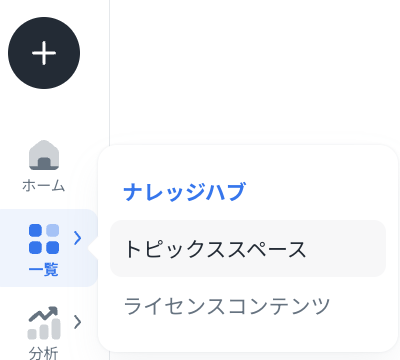 「一覧」>「トピックスペース」で表示させたいスペースの右上のアイコンをクリックします。
