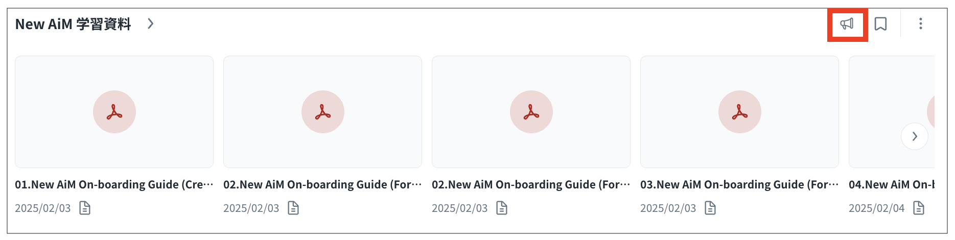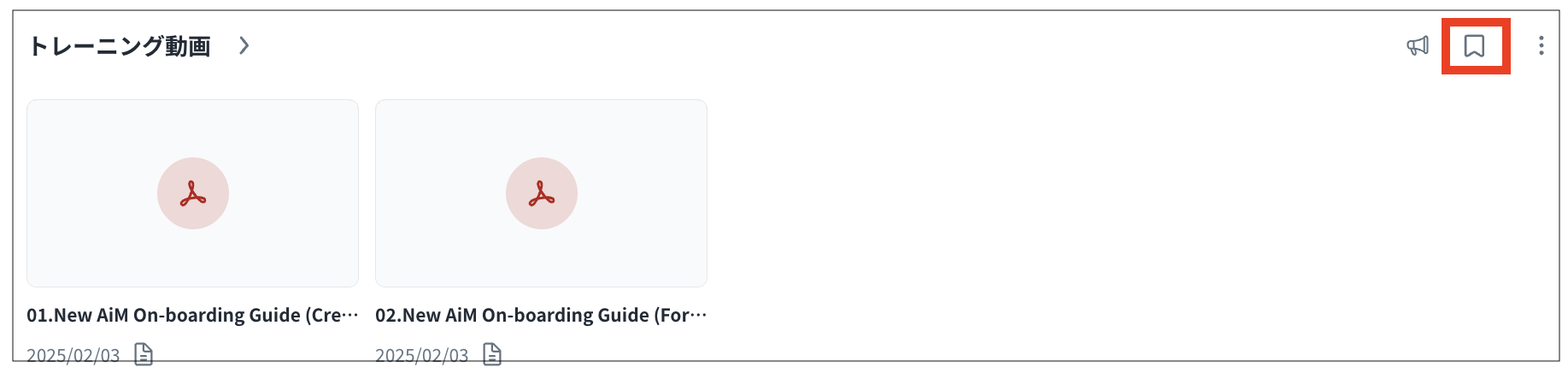 「一覧」>「ナレッジハブ」ページでお気にり(アイコンをクリック)したコンテンツが表示されます。