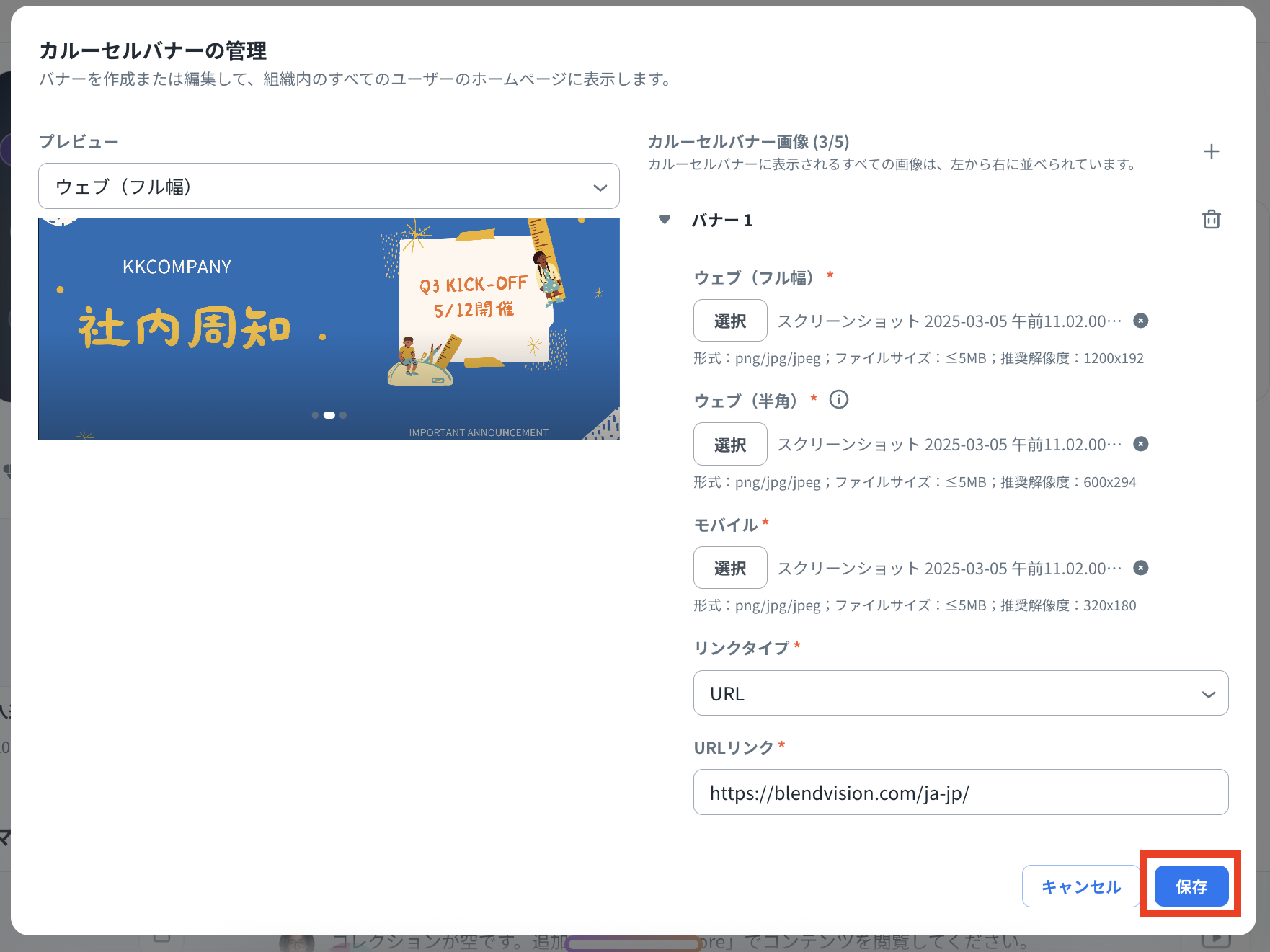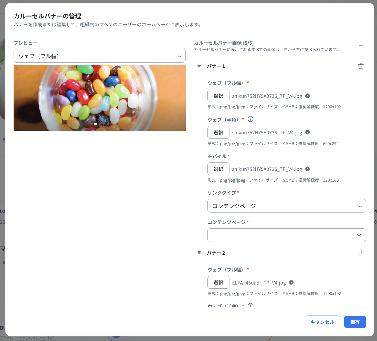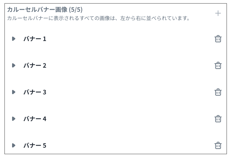「カルーセルバナーの管理」画面にてバナーの設定を行います。
