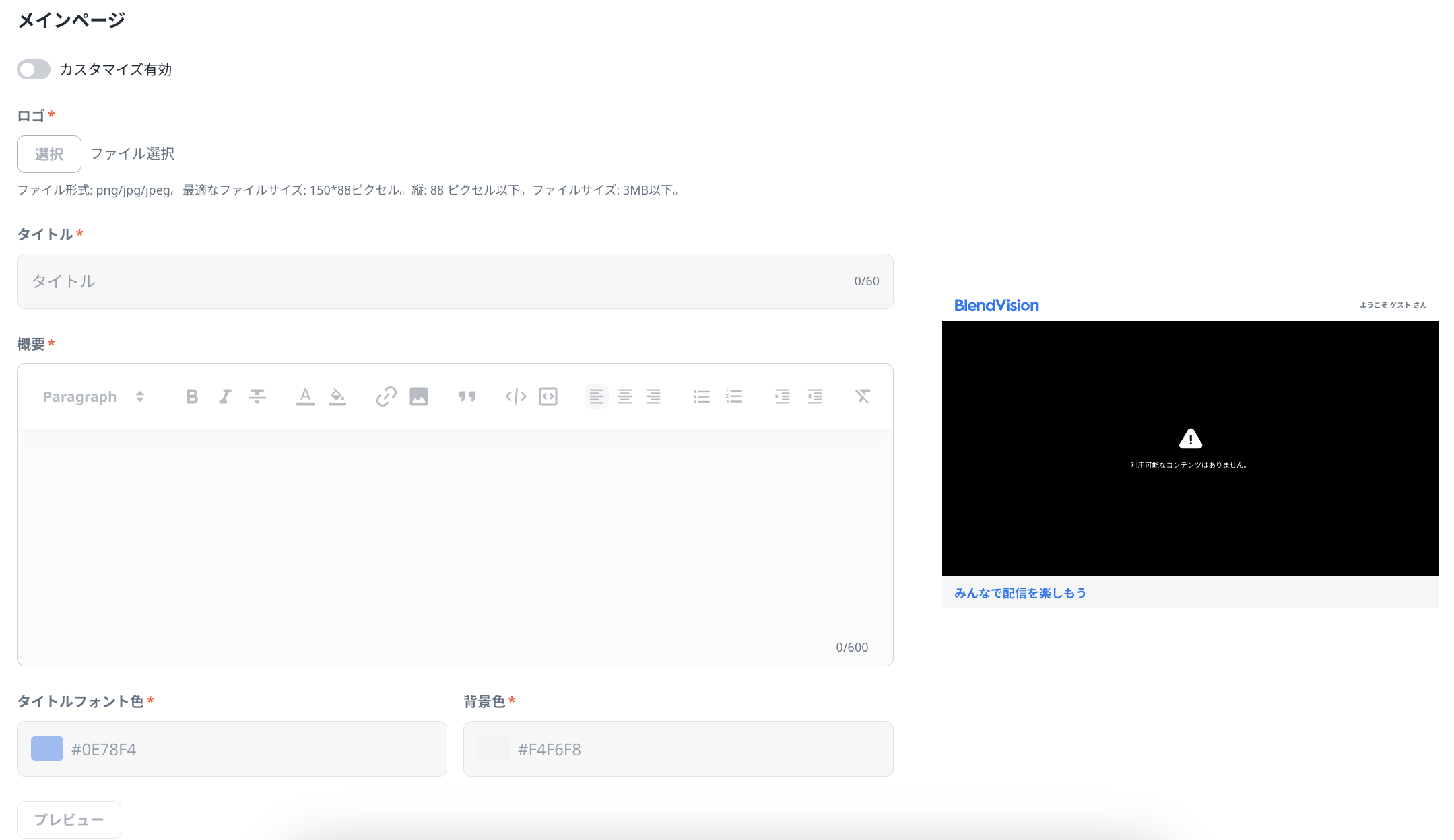 BlendVisionでは、各VODやライブイベントに対してショールーム(視聴者のために生成、デザインされるWebページ)をご用意しています。ショールームは、作成画面にデフォルト値で既に設定されており、自動生成されるため、基本的にお客様側での作業は不要です。