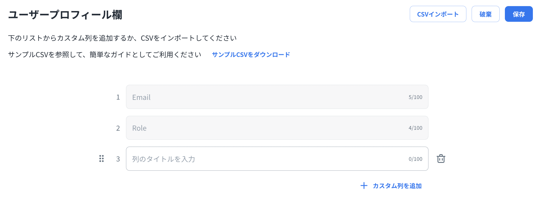 ユーザープロフィール欄を管理:ユーザーリストの項目を追加できます。
