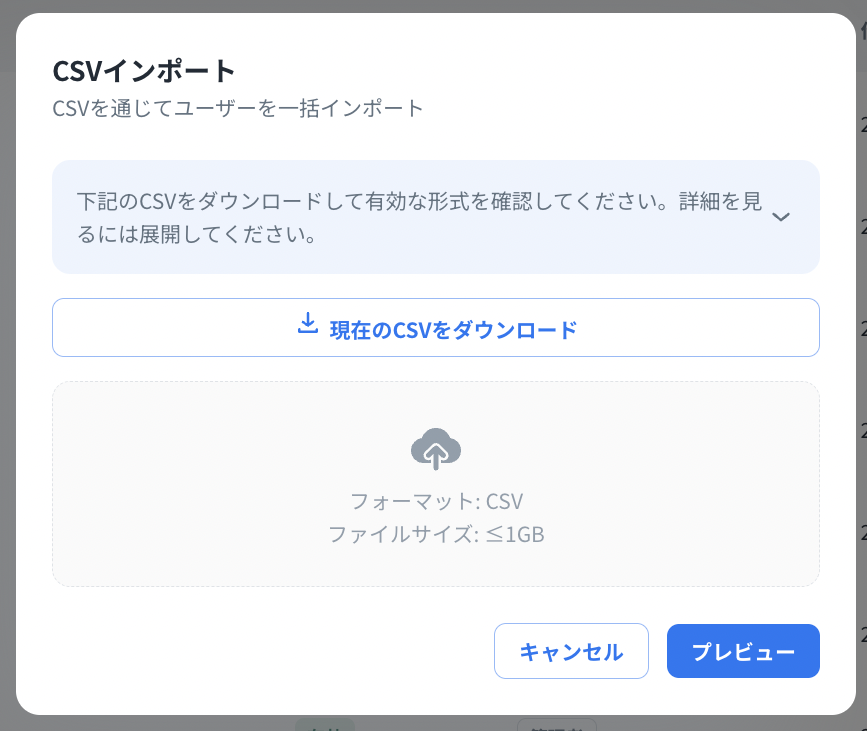CSVインポート:CSVファイルから複数ユーザーを追加