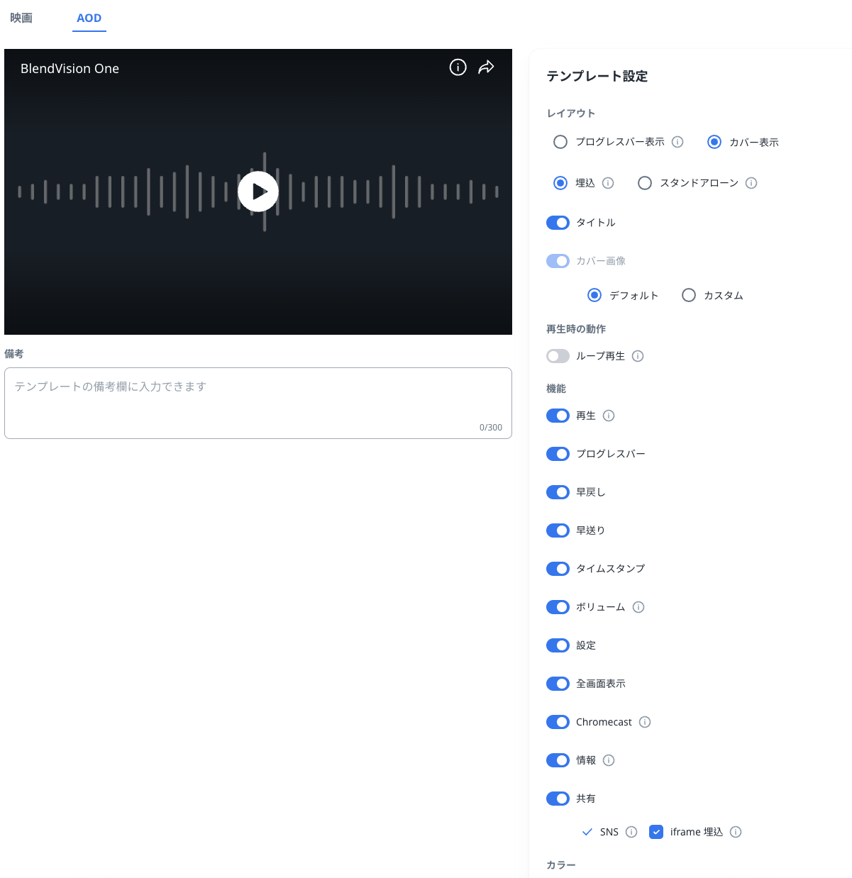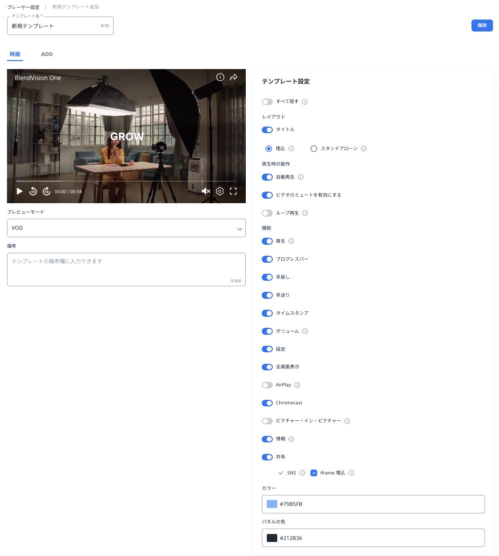また、設定済みのテンプレートは、各VODやライブの設定画面から変更可能です。