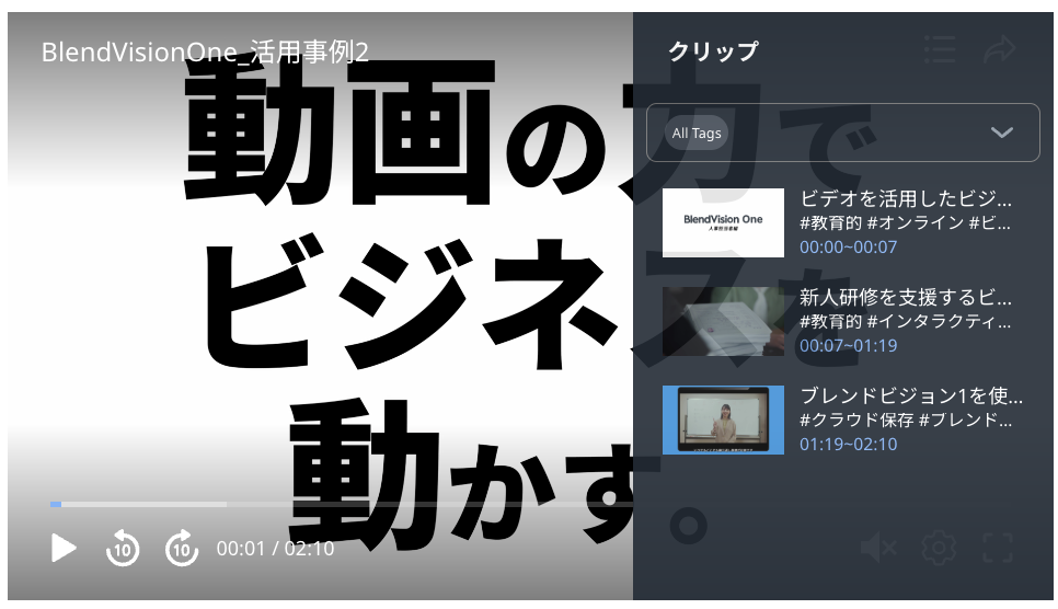 「クリップとタグ」からクリップを選択するとプレーヤーの画面がクリップされた場面にスキップします。