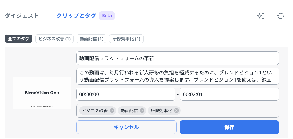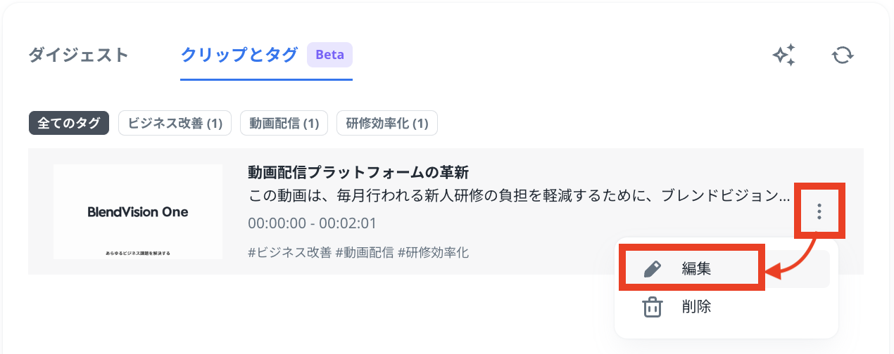 以下の手順で自動生成されたクリップとタグの編集が可能です。