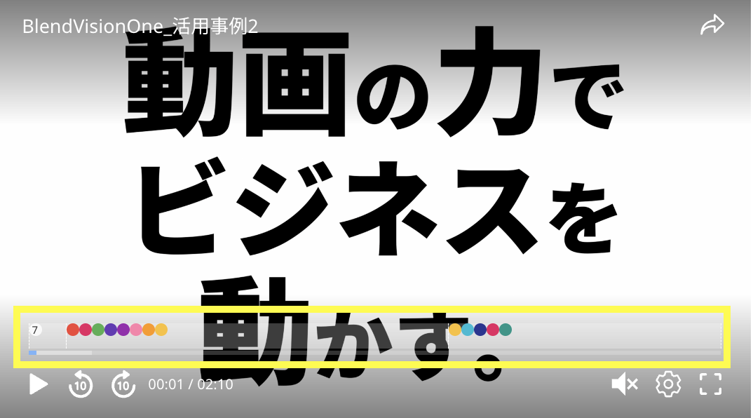 「クリップとタグ」の「プログレスバーに表示」を有効にして画面右上の「保存」ボタンをクリックして保存するとプレーヤー画面のプログレスバーにタグが表示されます。