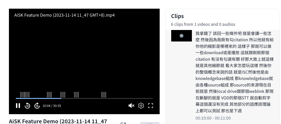• Click the clip and the player will jump to the timestamp you select.