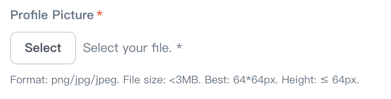 • Profile Picture: The logo will be shown on Playground. You can upload a file in png/jpg/jpeg format.