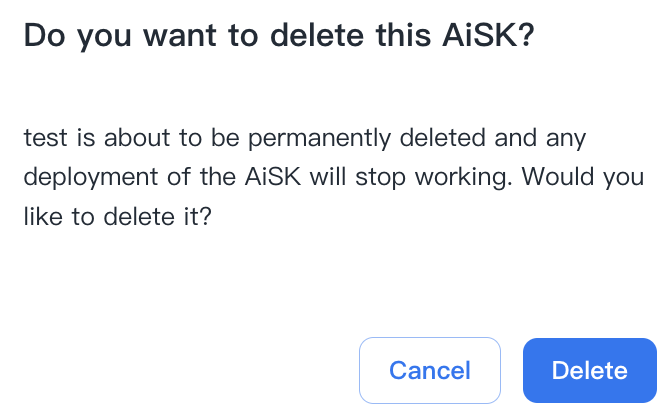 You can delete AiSK in the AiSK List by clicking on the delete icon.