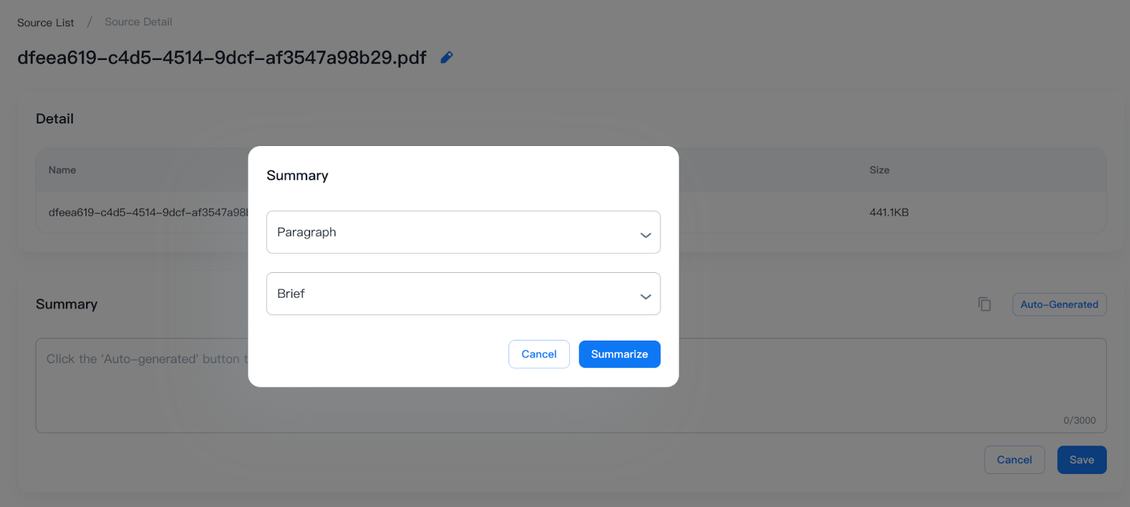 You can auto-gen or edit the contents of Summary on source details in the Source list.