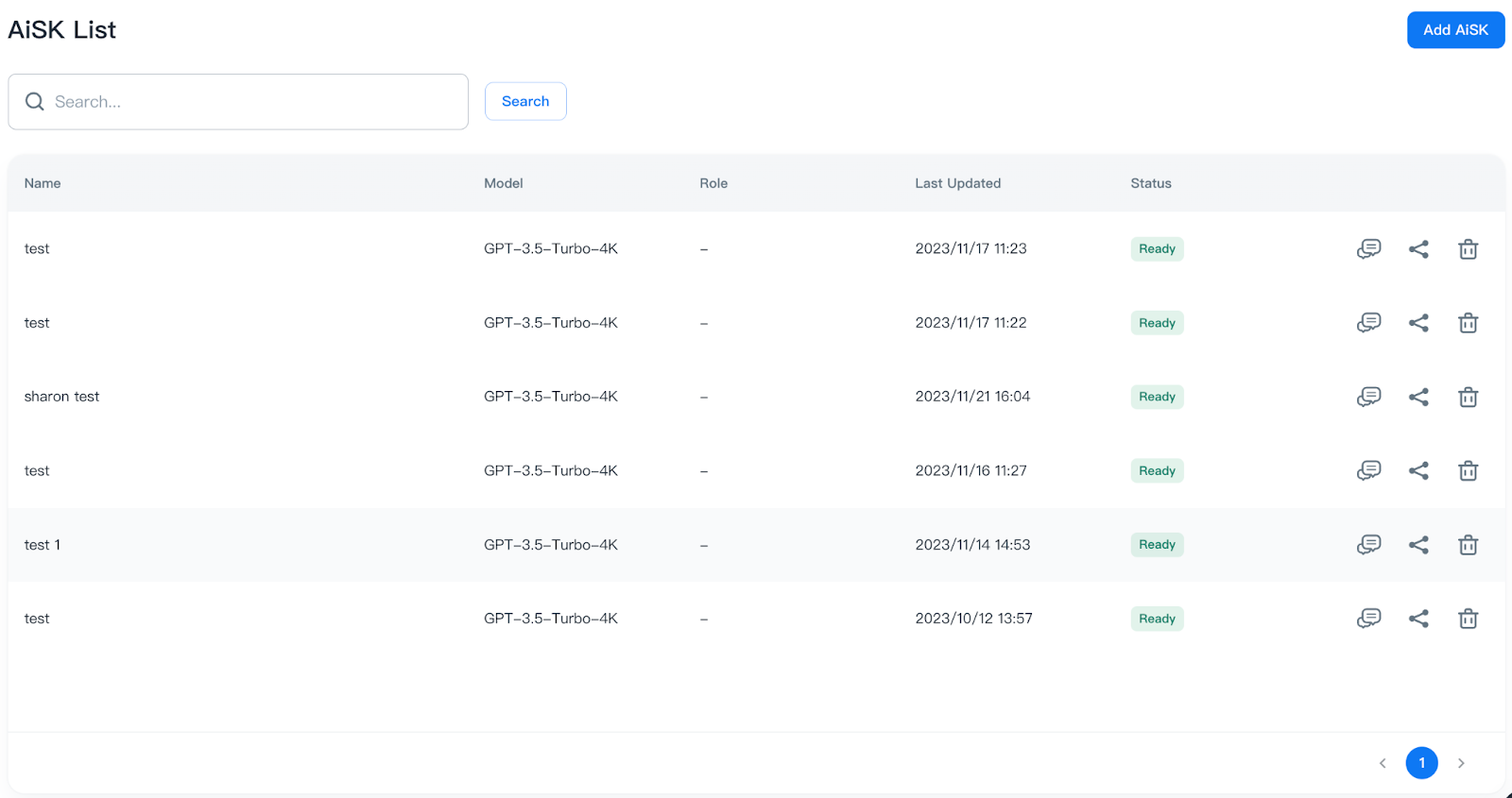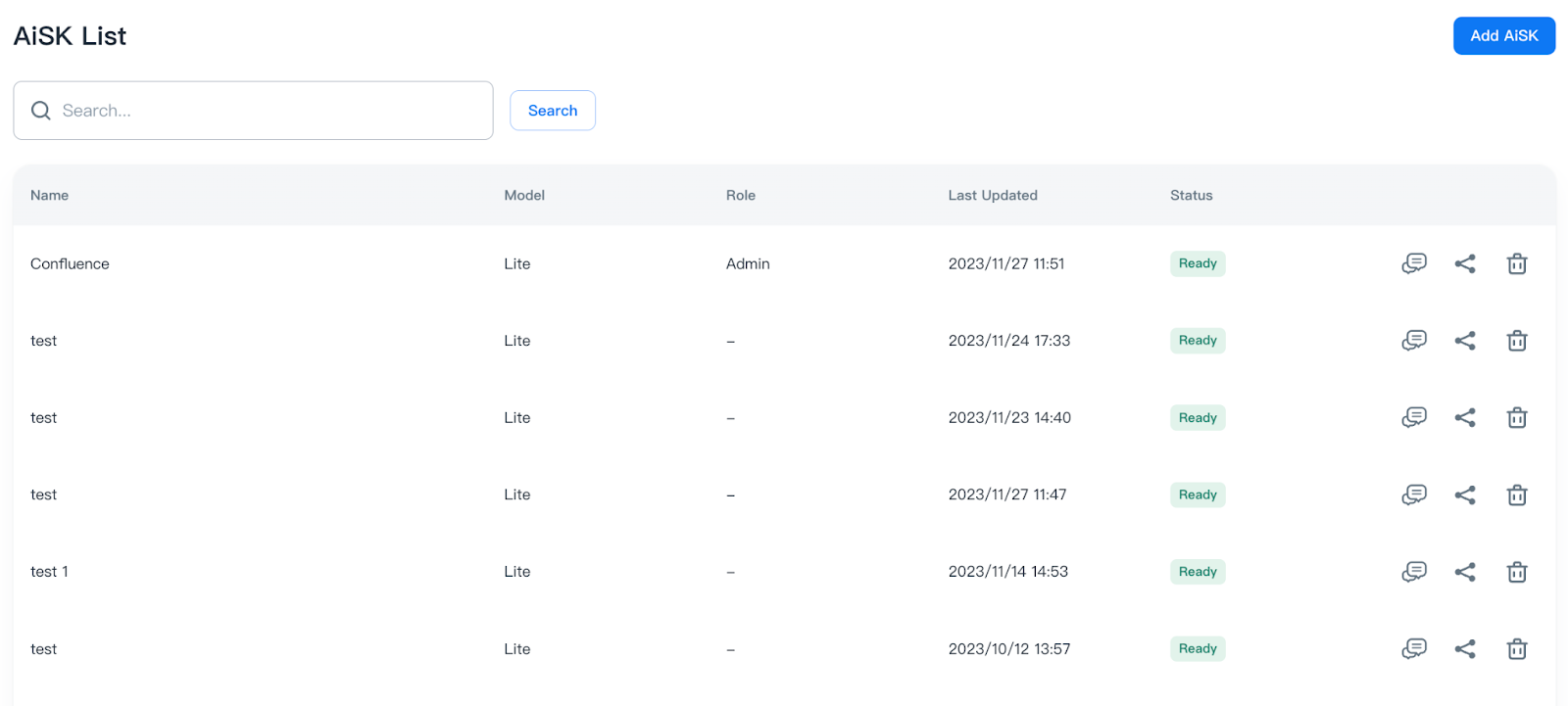 2. Click “Add AiSK” to create AiSK
