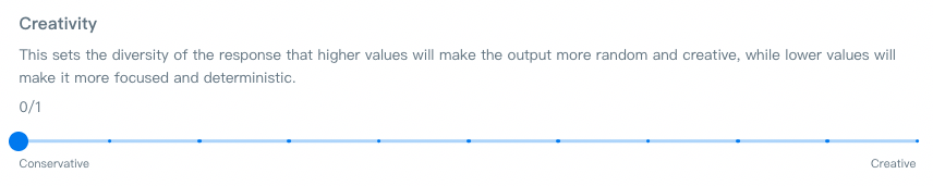 • Creativity: Default setting is 0. The value can be set between 0-1.