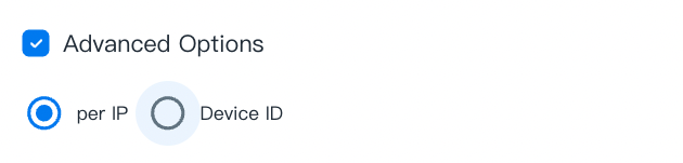 • Advanced Options: Enable Advanced Options, you can define advanced limitations with user identity. You can choose either per IP or Device ID to limit the frequency of sending messages. (default is per IP)