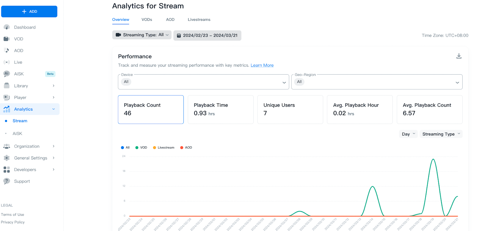 - VOD tab: detailed reports for each VOD.