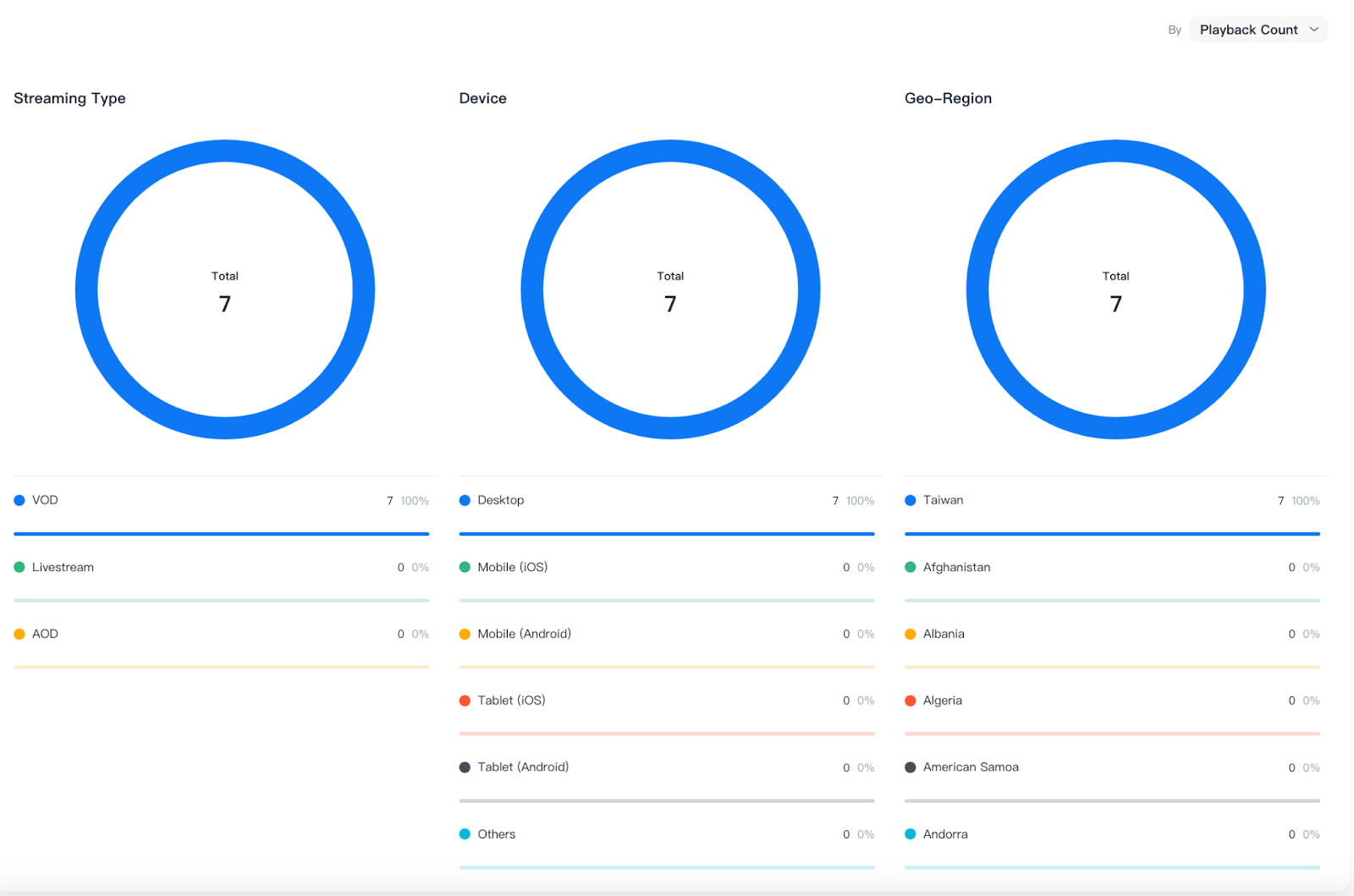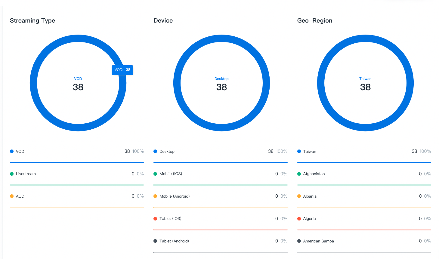 - Click on the right drop-down menu to switch between chart types: Streaming Type, Device, and Geo-Region.