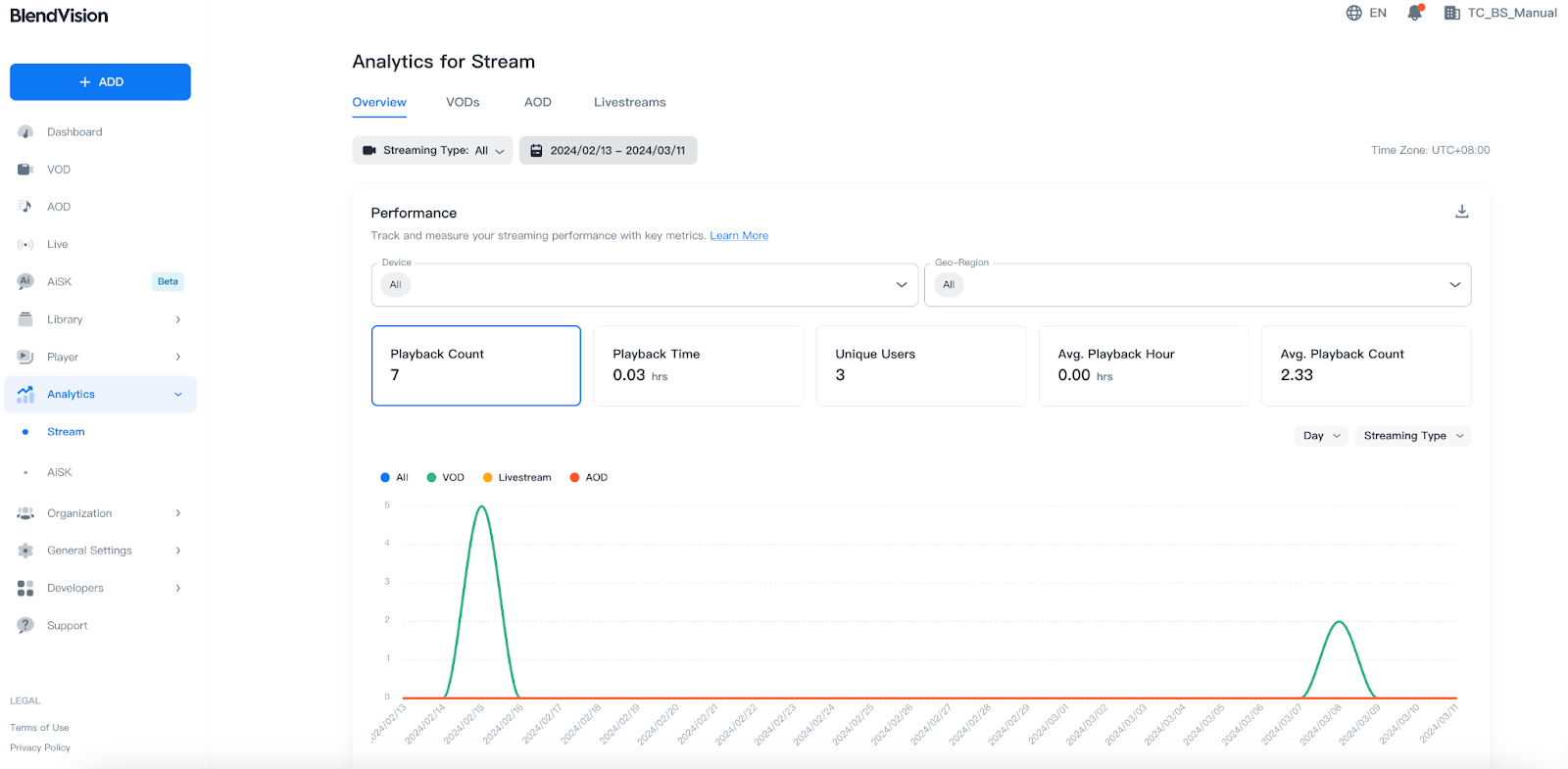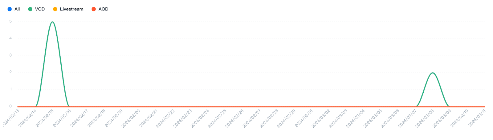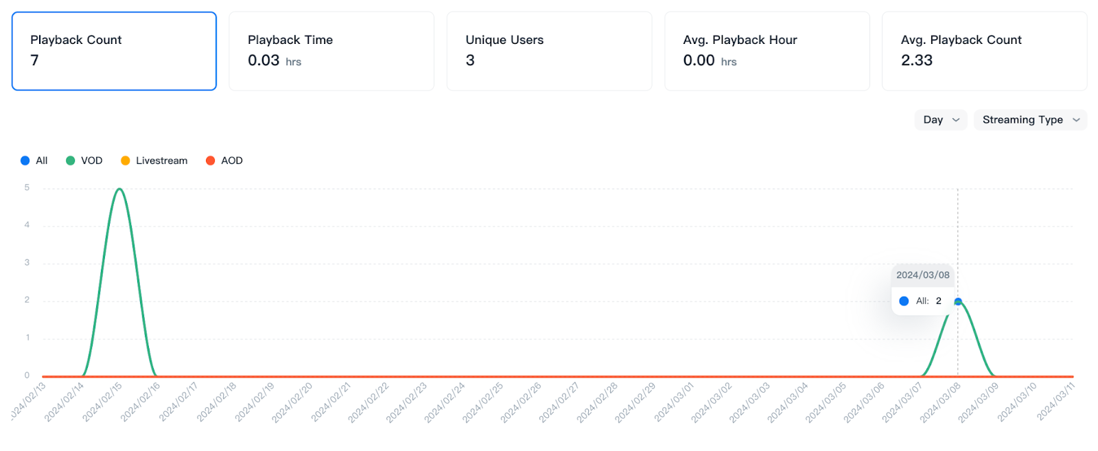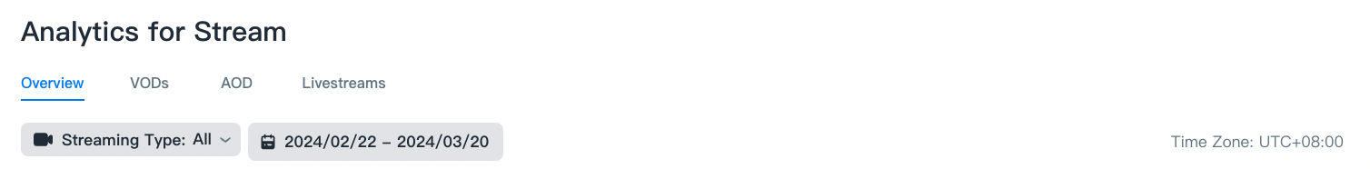 - Streaming Type: select and filter content type by All, Livestream, and VOD.