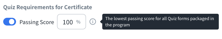 - Quiz Requirements for Certificate: Toggle “Passing score _%” on, the certificate of the program will be provided only when the users pass the percentage of score (Default is off).