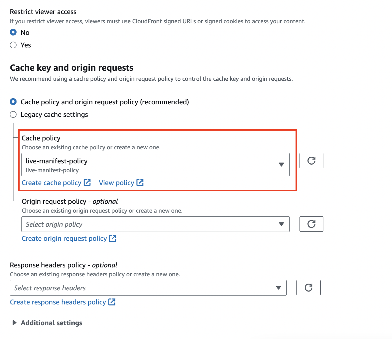 2. 91bb67f9-4f4e-4226-831d-9874a7862b61/vod/*.m3u8 (select the VOD manifest policy as Cache policy)