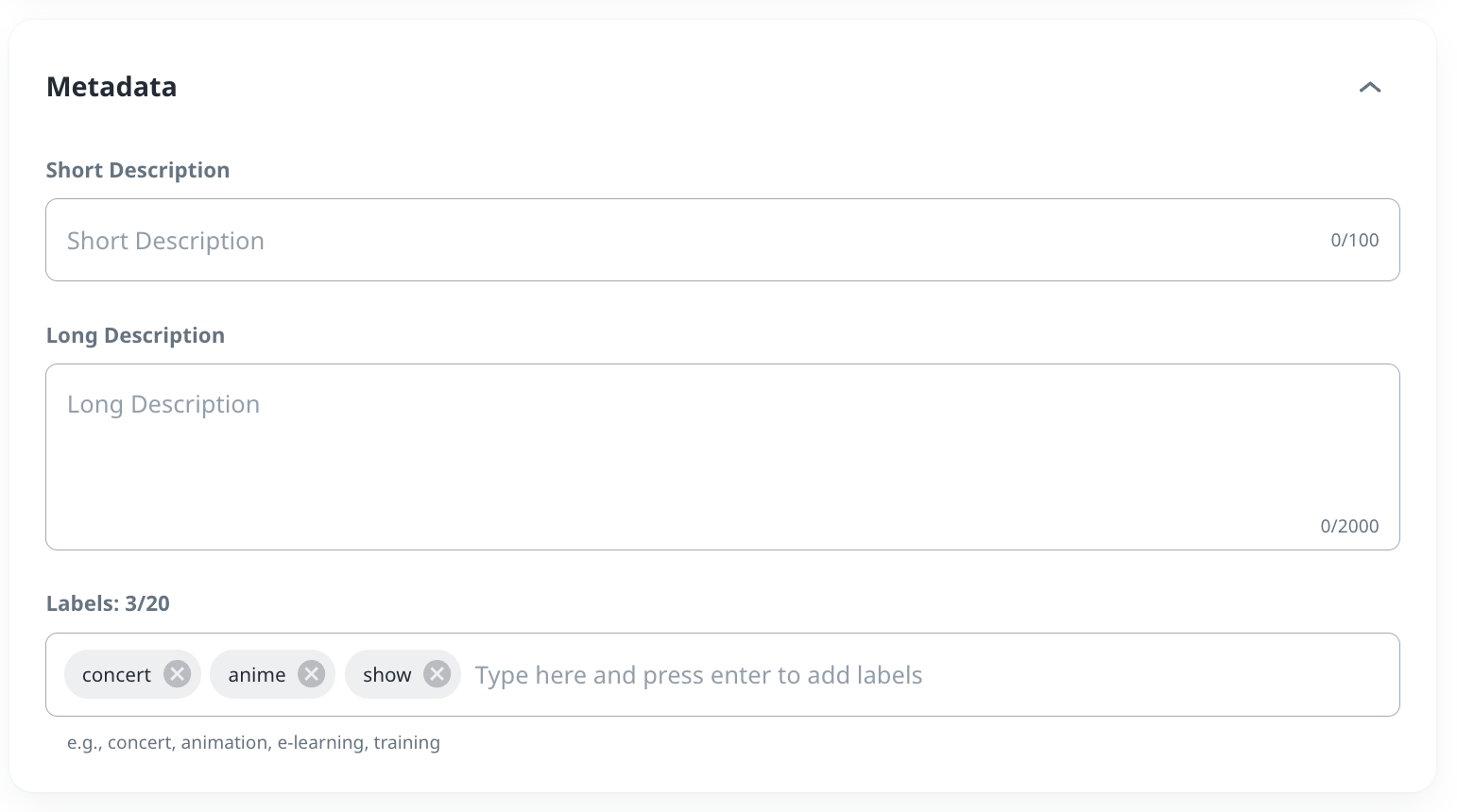 - Max: 20 labels per content