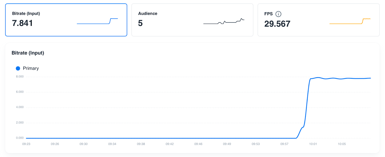 This graph shows the bitrate of the input signal received by the stream server from the “Preview” to “Ended” status.