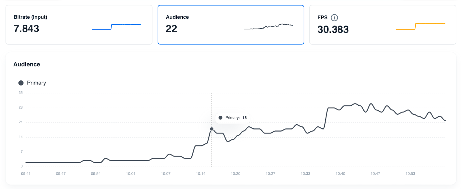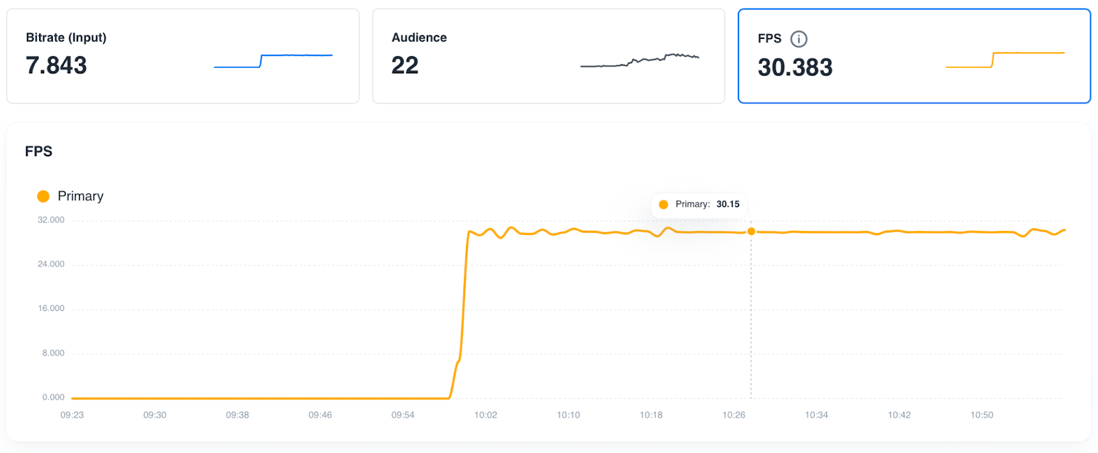 This graph shows the FPS of the input signal received by the stream server from the “Preview” to “Ended” status.