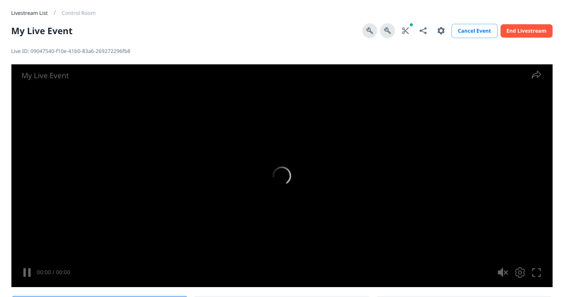 2. Click the control room icon on the right side of your live event in the Livestream List