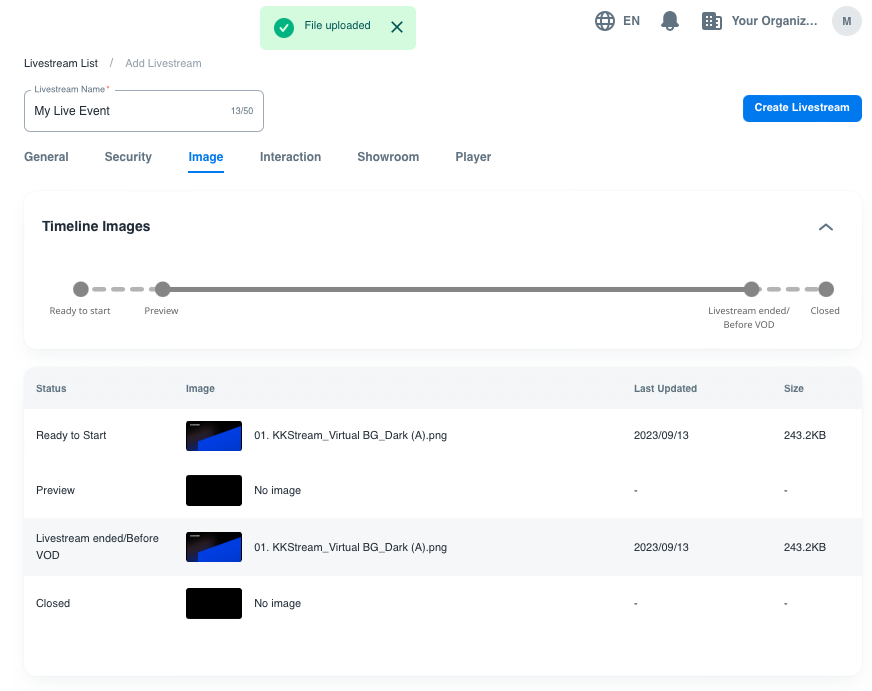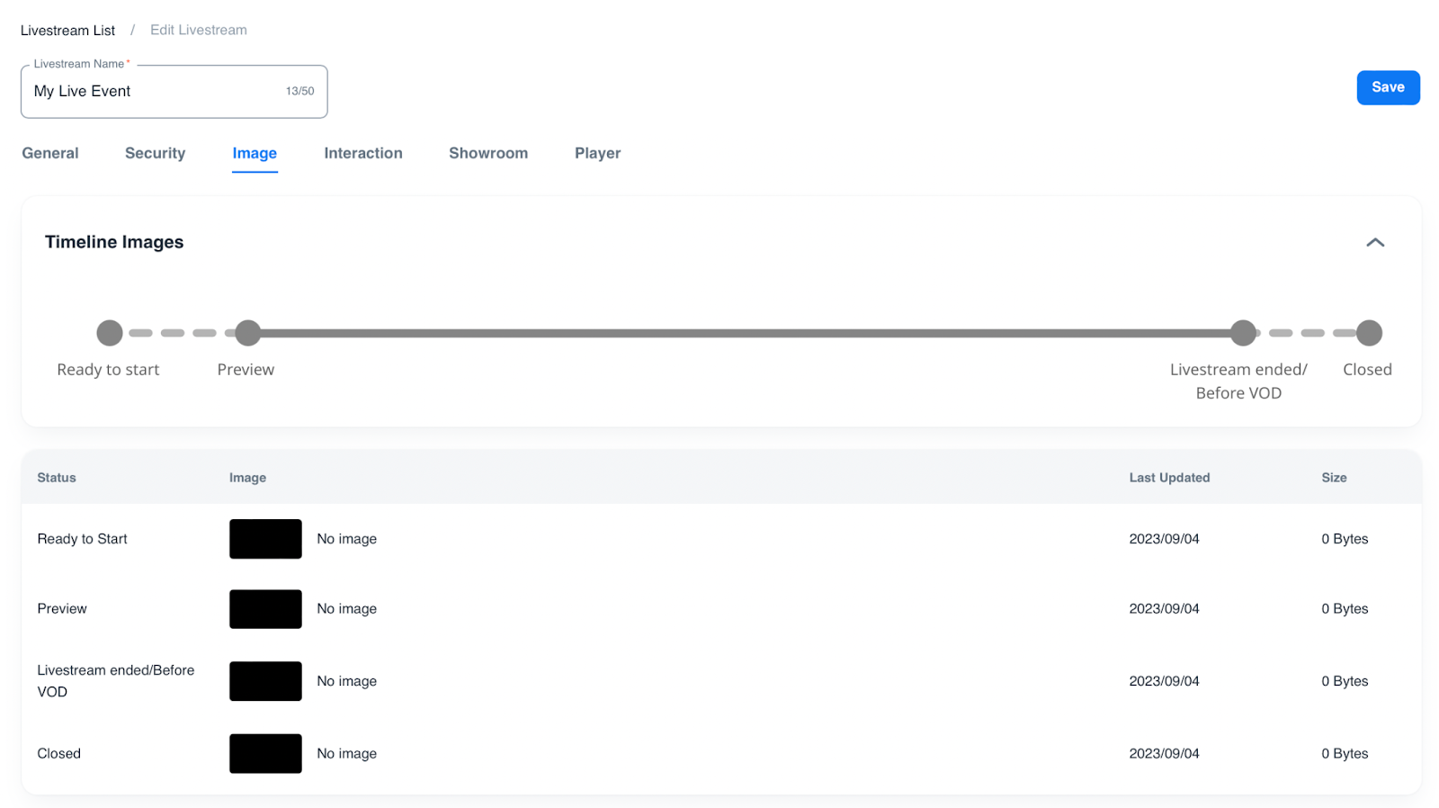 BlendVision One allows you to set up a cover image for each status of your live event.