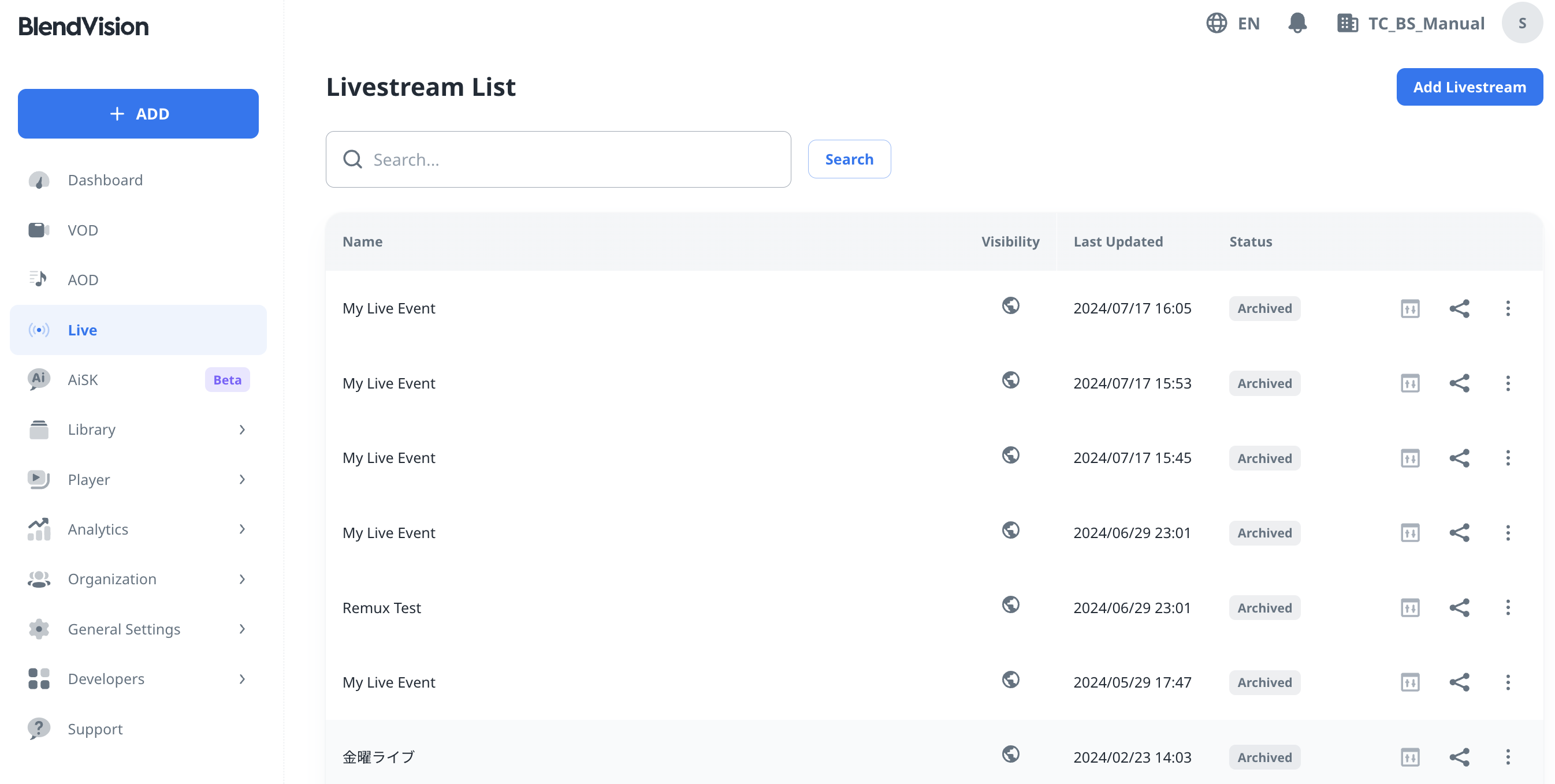 1. You can refer to Add a Live Event to create a new event, or Edit a Live Event for steps on accessing the settings page of a live event via the Livestream List.