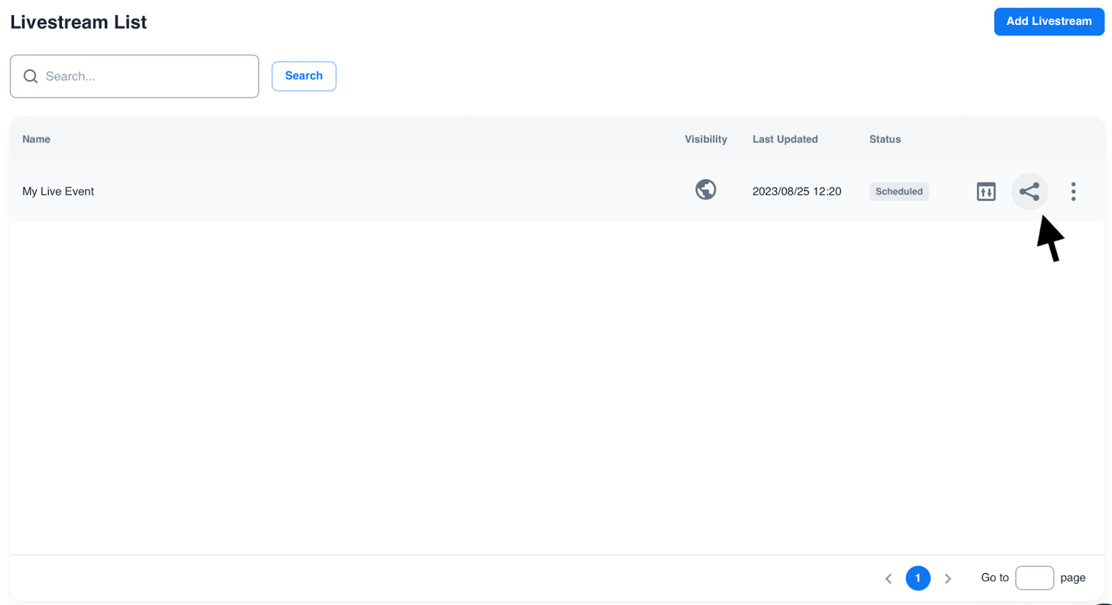 Access the “Livestream List” by clicking on “Live” in the left sidebar.