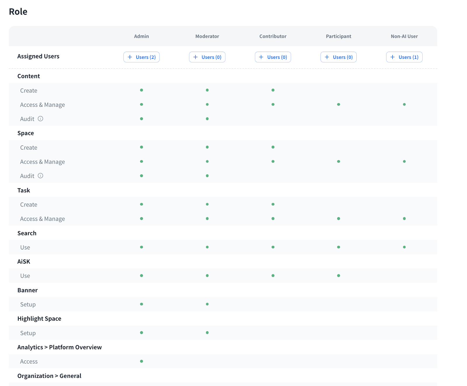 • Non-AI User can access and manage the spaces in the organization.