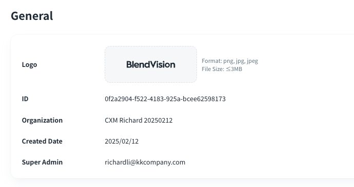 In the General page, you can confirm the general information of your organization: