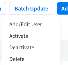 • Execute batch update via file import: Click Batch Update for batch update of user status as below: