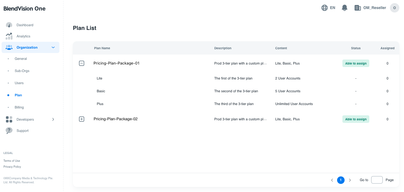 This article introduces the steps on confirming the assignable pricing plans and their offering of the reseller organization.