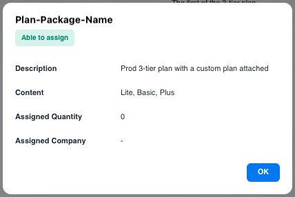 • Click on the selected plan package to show the dialog of package details: