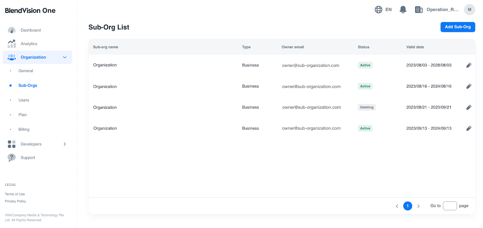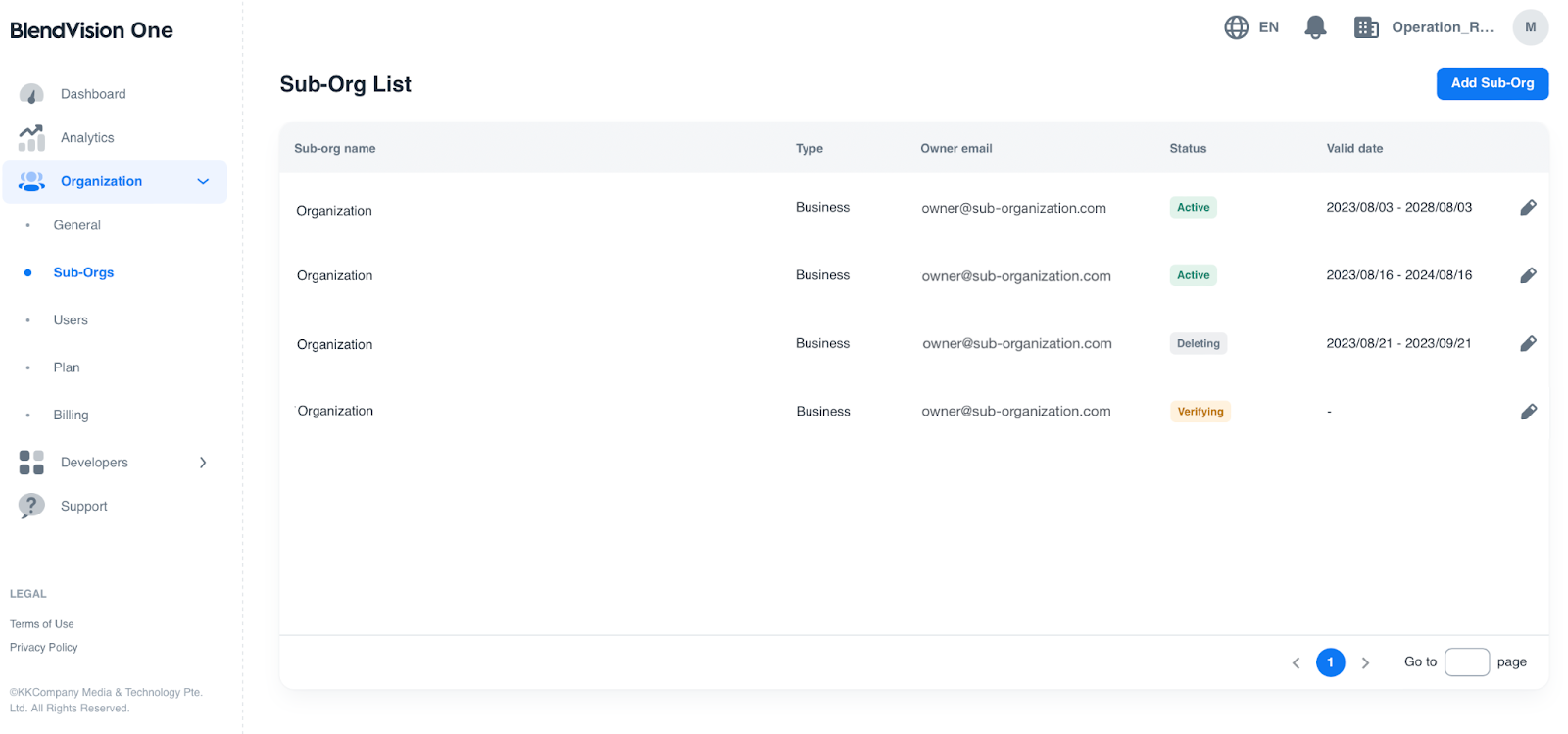 In the Sub-Orgs page, you can easily add, delete, and edit their detailed information of each sub-organization through a centralized list.