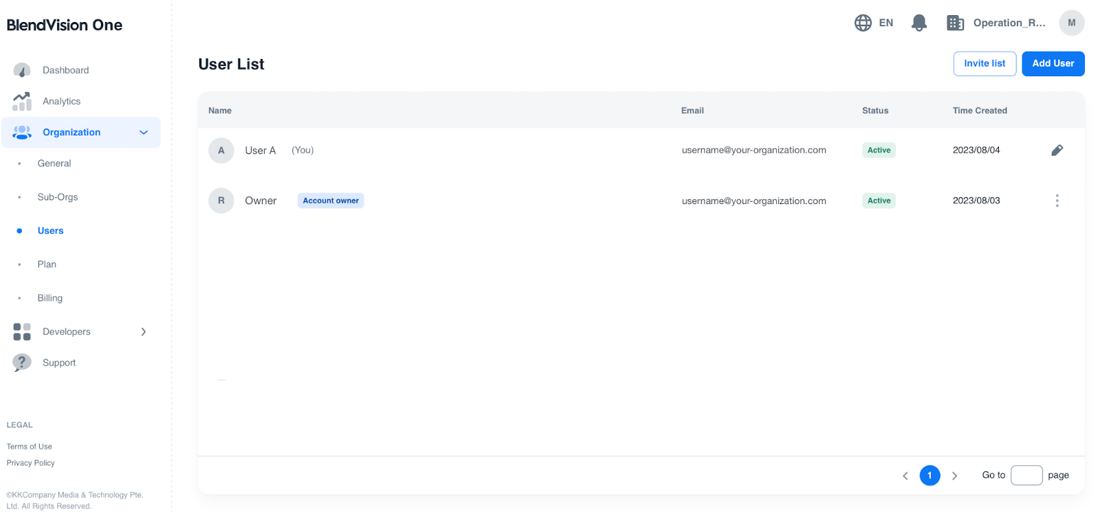3. After the invitation is sent, you can confirm the user’s verification status by pressing the “Invite list” button displayed on the upper-right side of the Users page.