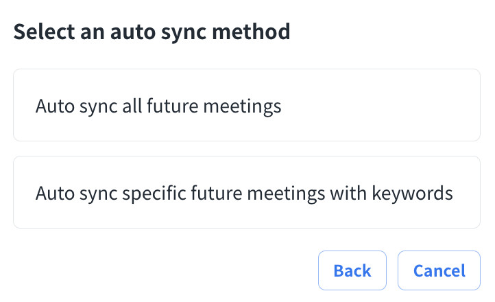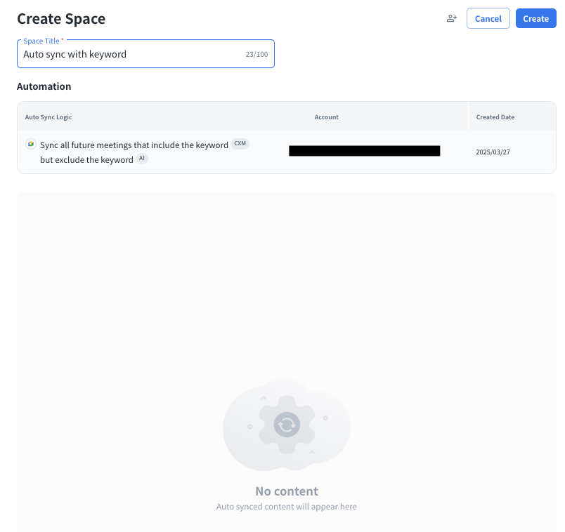 - Auto sync all future meetings: The files in your account will be automatically synced to the space.